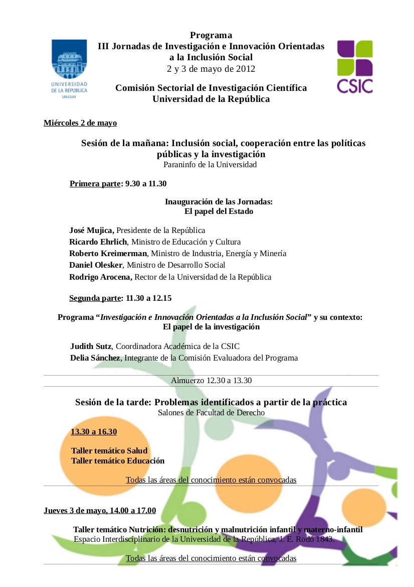 [Todos] Programa Jornadas de Investigación e Innovación para la Inclusión Social-UdelaR
